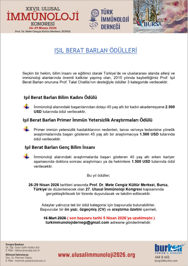 XXVI. Ulusal İmmunoloji Kongresi - Sözlü Bildiriler Burs Başvuru
